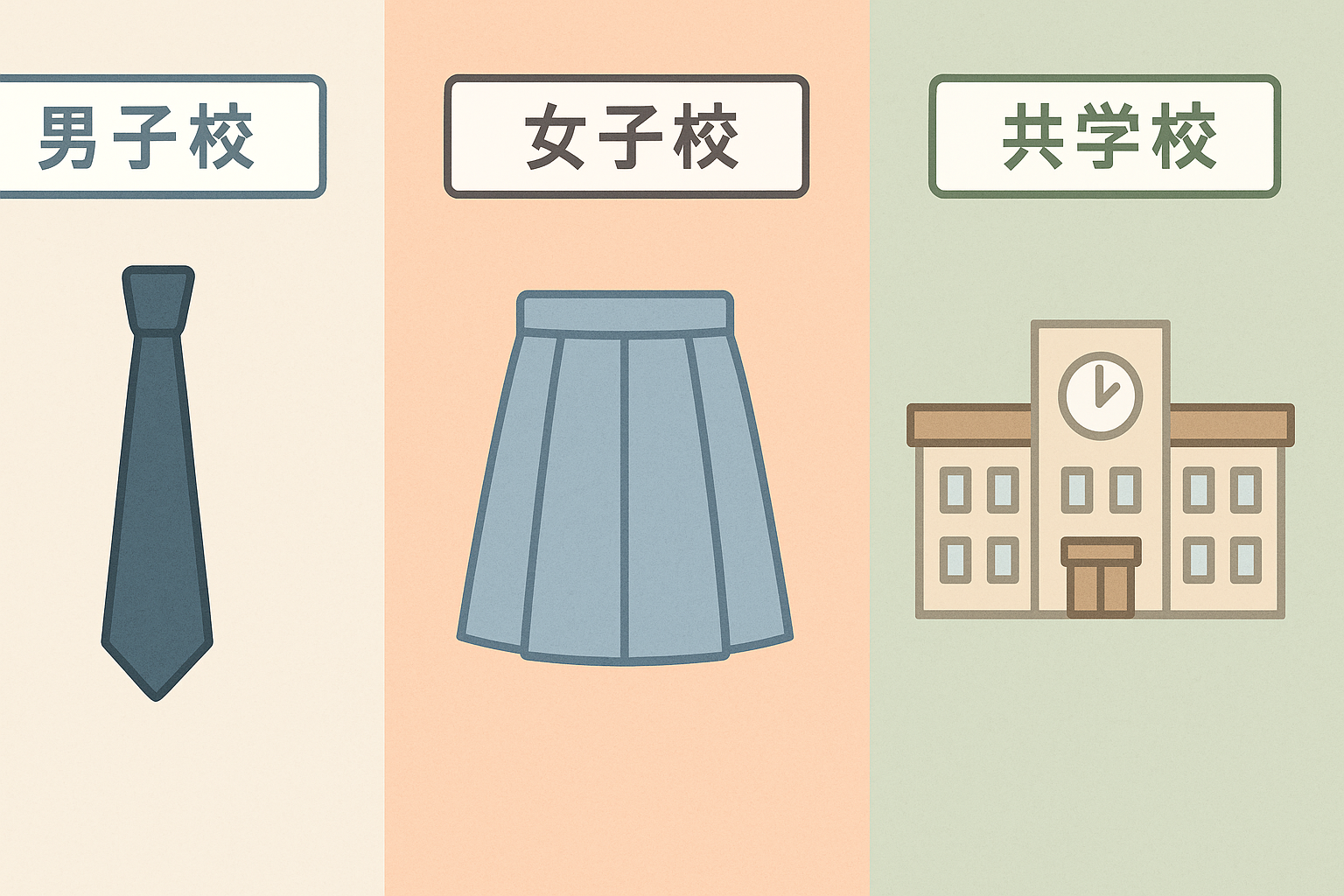 志望校選び 【中学受験】男子校・女子校・共学校の違いと|子どもの性格で選ぶ学校タイプ 中学受験で悩むポイントの一つが「男子校・女子校・共学校」の選択です。本記事では、男子校・女子校・共学校の特徴をわかりやすく比較し、内向的・社交的・バランス型といった性格別に最適な進学先を解説。さらに進学実績や大学合格傾向の違いもまとめ、わが家の体験談も交えて具体的に紹介します。 2025.10.01 志望校選び
