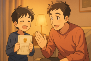 昨日の夜、塾から帰宅した長男に「育成テストのクラス内順位はどうだった?」と聞いてみました。長男はほんの少し間を置いてから、照れくささと嬉しさが混ざったような表情で「……1位だった!」と答えてくれました。