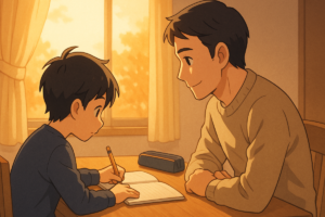 しばらくすると、長男は日能研特製ノート──表紙に「1位」と印字されたもの──を写真に撮り、妻と祖父母にメールで送っていました。気にかけてもらっている人たちに自分から報告したいと思える気持ち。それこそが、父親として一番嬉しく感じたことでした。
