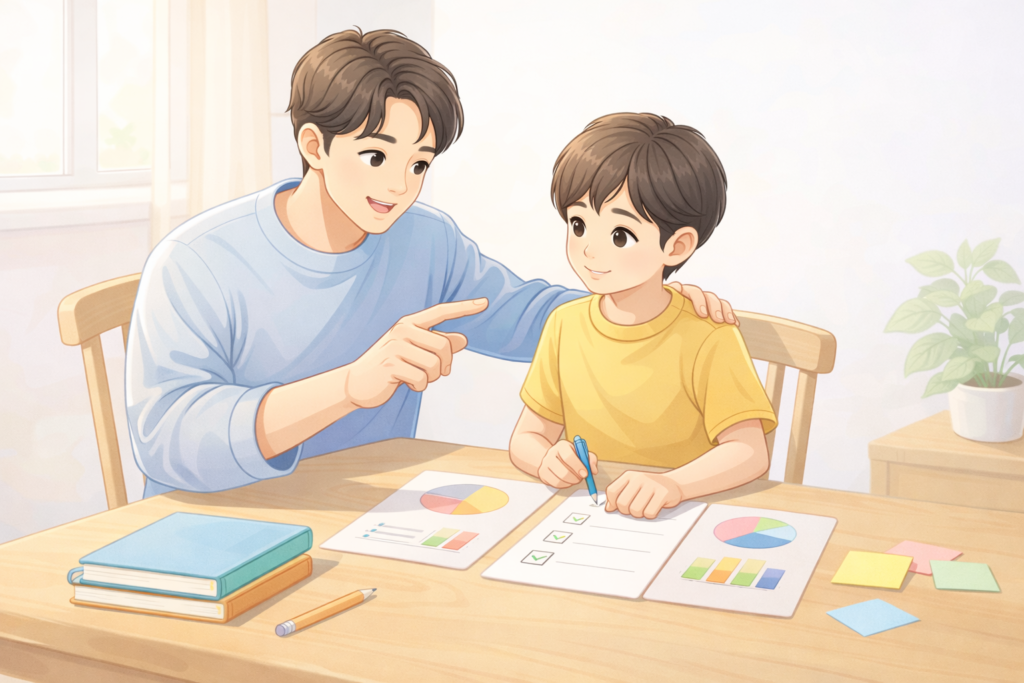 - 間違い直しは、解法だけでなく条件の読み落としを言語化