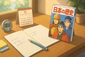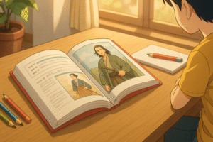 本記事は、小5・日能研通塾の実体験に基づいた導入記です。「興味→理解→記憶→表現」の回路づくりはどの家庭でも再現可能。子どもが「歴史=暗記」ではなく「人と時代のストーリー」として学ぶとき、学びは受験対策を超えて豊かになります。